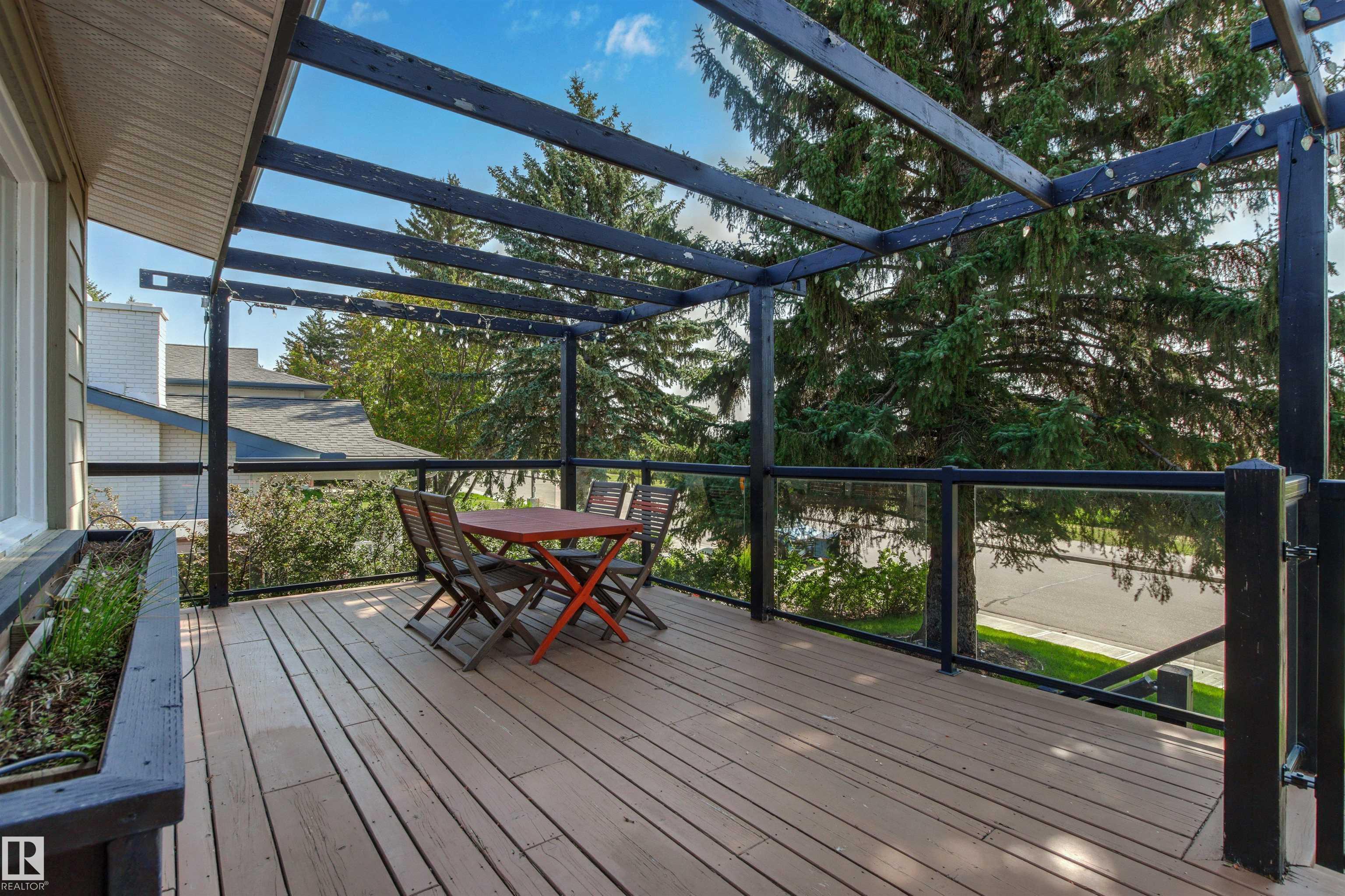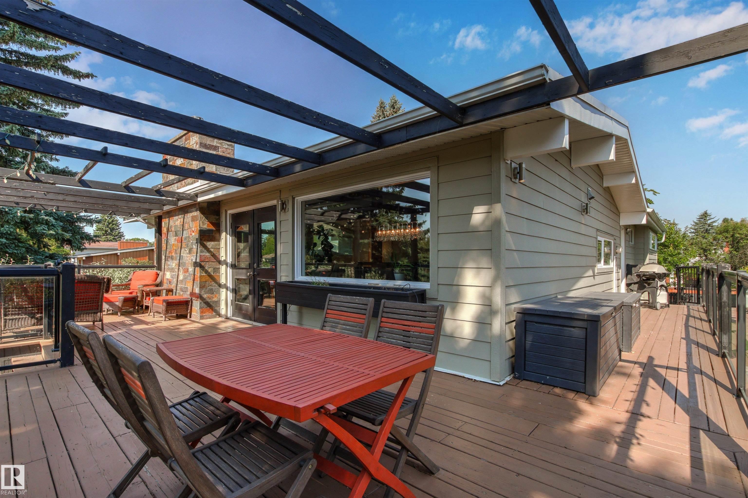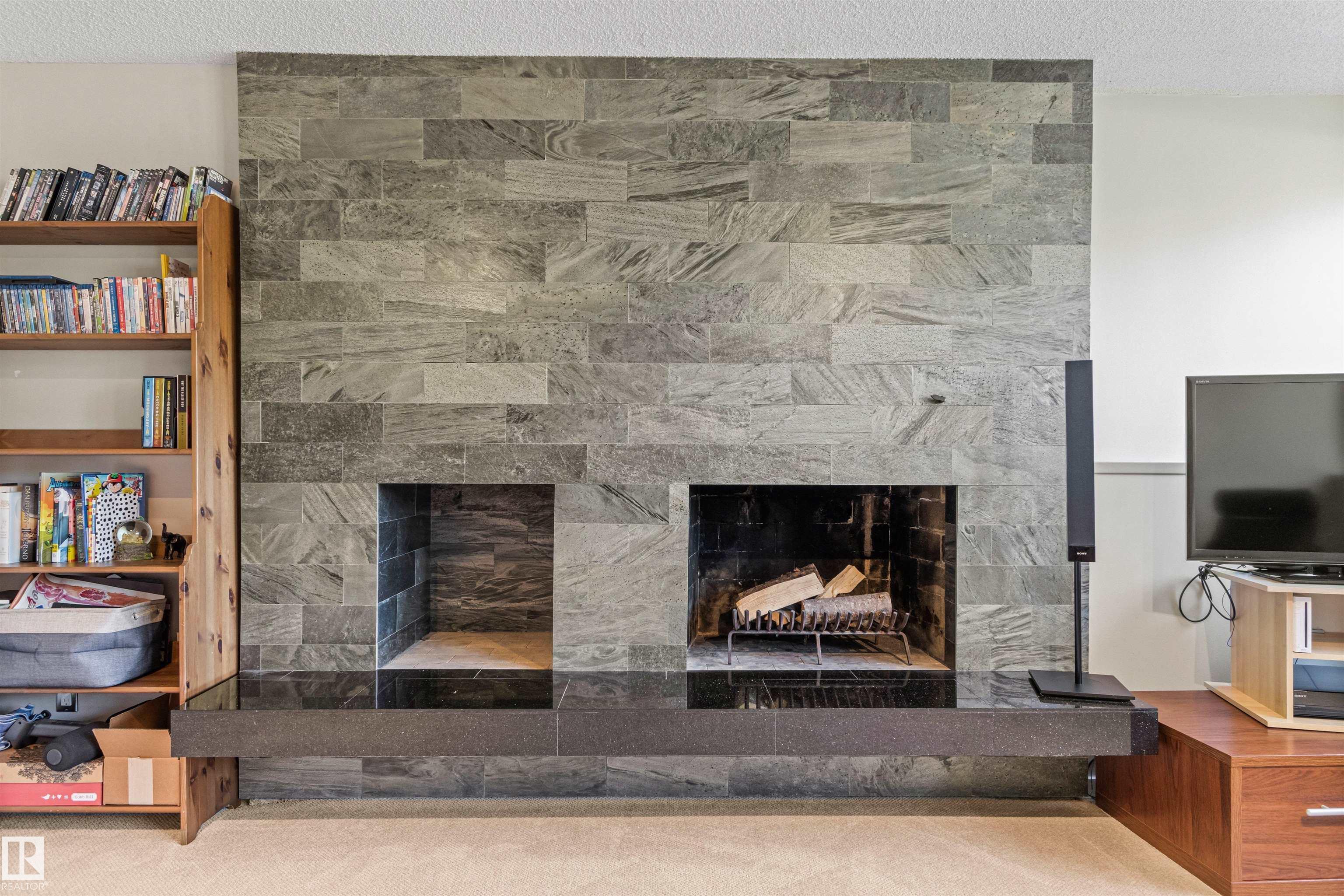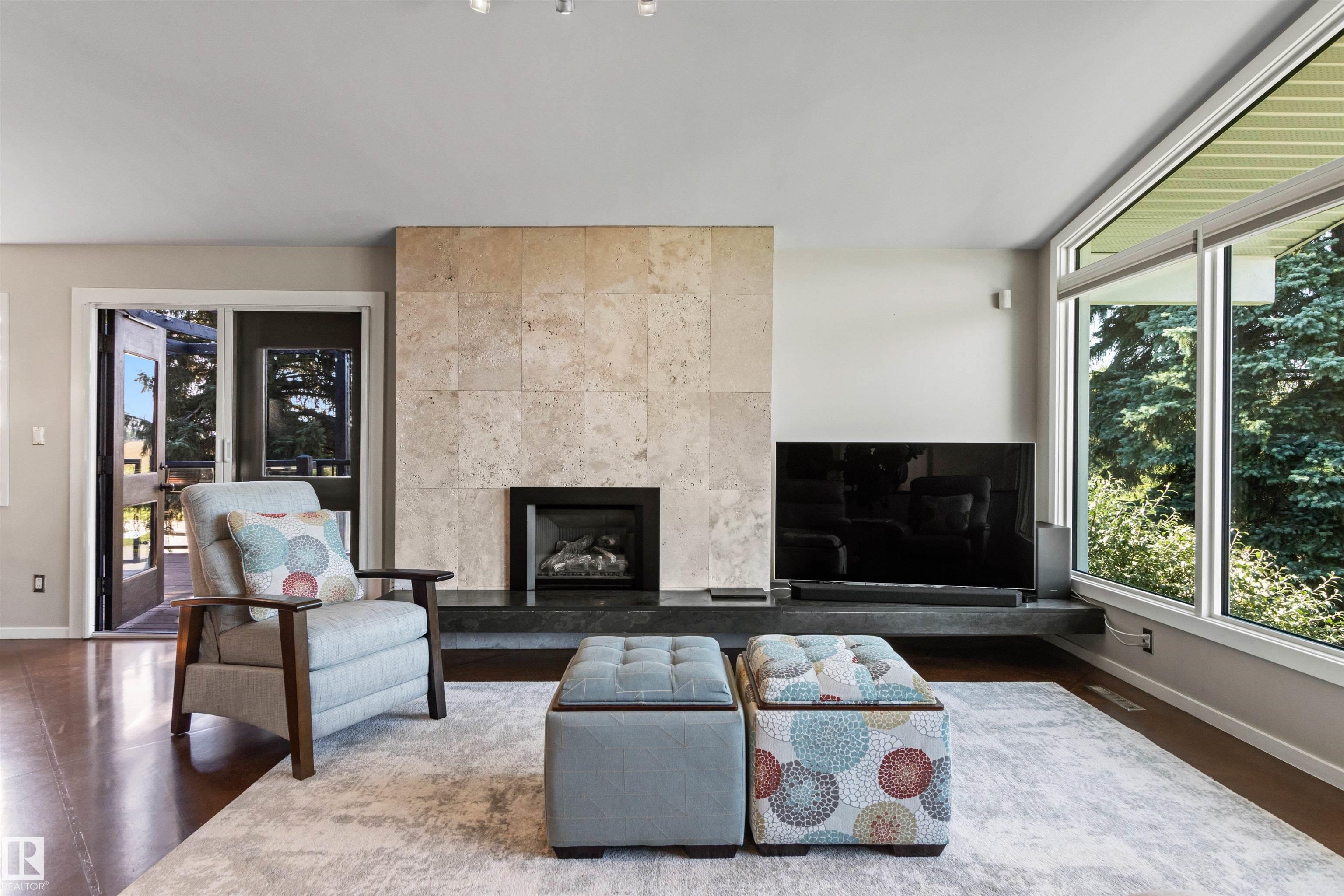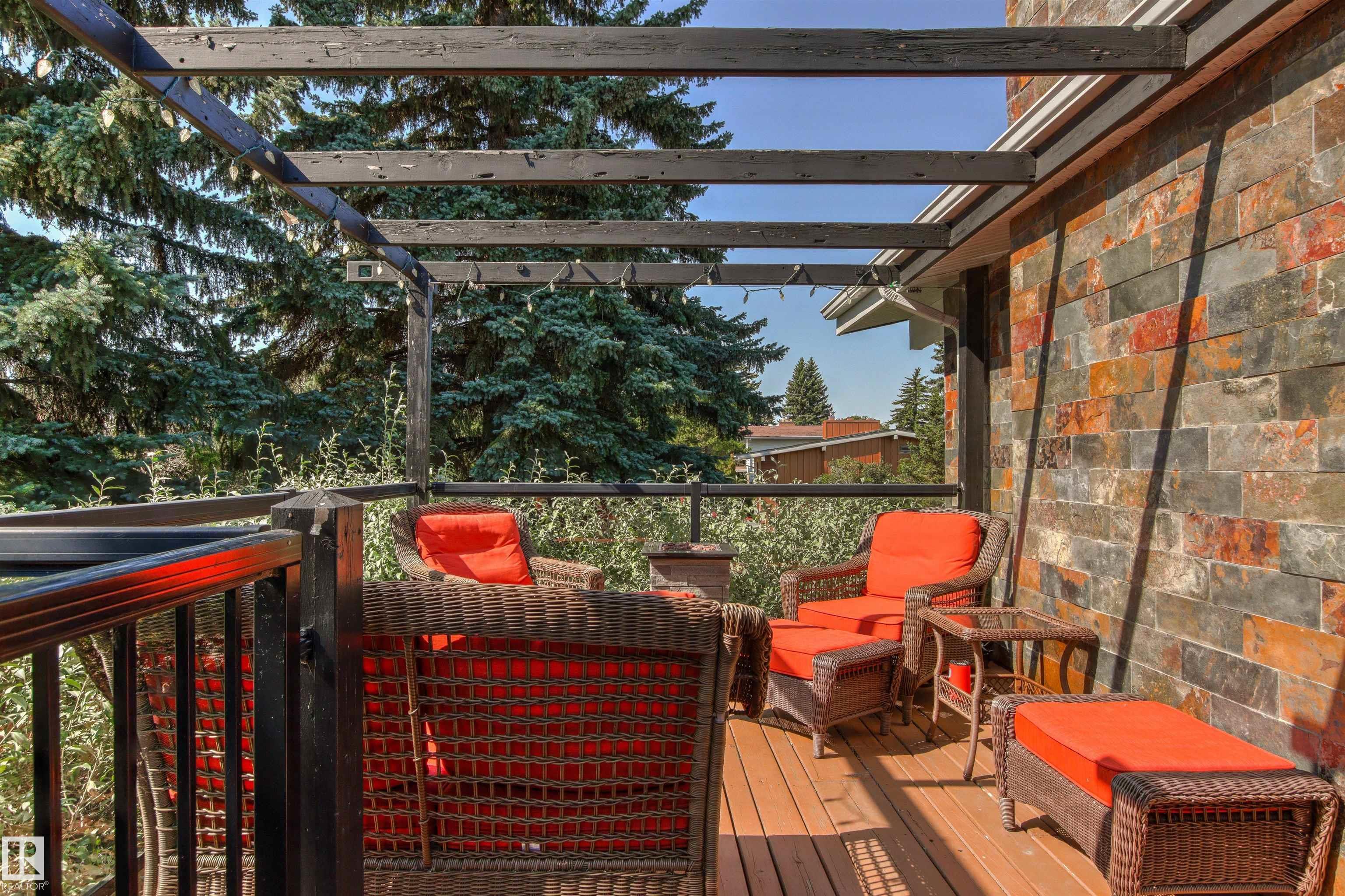 Welcome to this beautifully renovated & updated 1646 sq ft bi-level located in the desirable Grandview Heights steps to the highly rated K-9 school, the trail systems of the river valley, the U of A & hospitals, & a short commute to downtown. The main floor offers a chic modern kitchen with stainless steal cabinetry, limestone counters, high end appliances, solid wood accents & unique glass island. Natural light streams through a wall of soaring windows into the adjacent living room with a gas fireplace & limestone surround. The dining room, also with a huge window has garden door access to the west deck overlooking the farm. Three bedrooms, one with a 3-piece ensuite, a 2-piece powder room & a spacious W-I pantry complete the main level. The fully developed lower level has a rec room with a wood-burning fireplace, two additional bedrooms, a 4-pce bathroom/laundry, & access to the over-sized heated double attached garage. Over 100K has recently been spent on upgrades in this terrific move-in ready home.